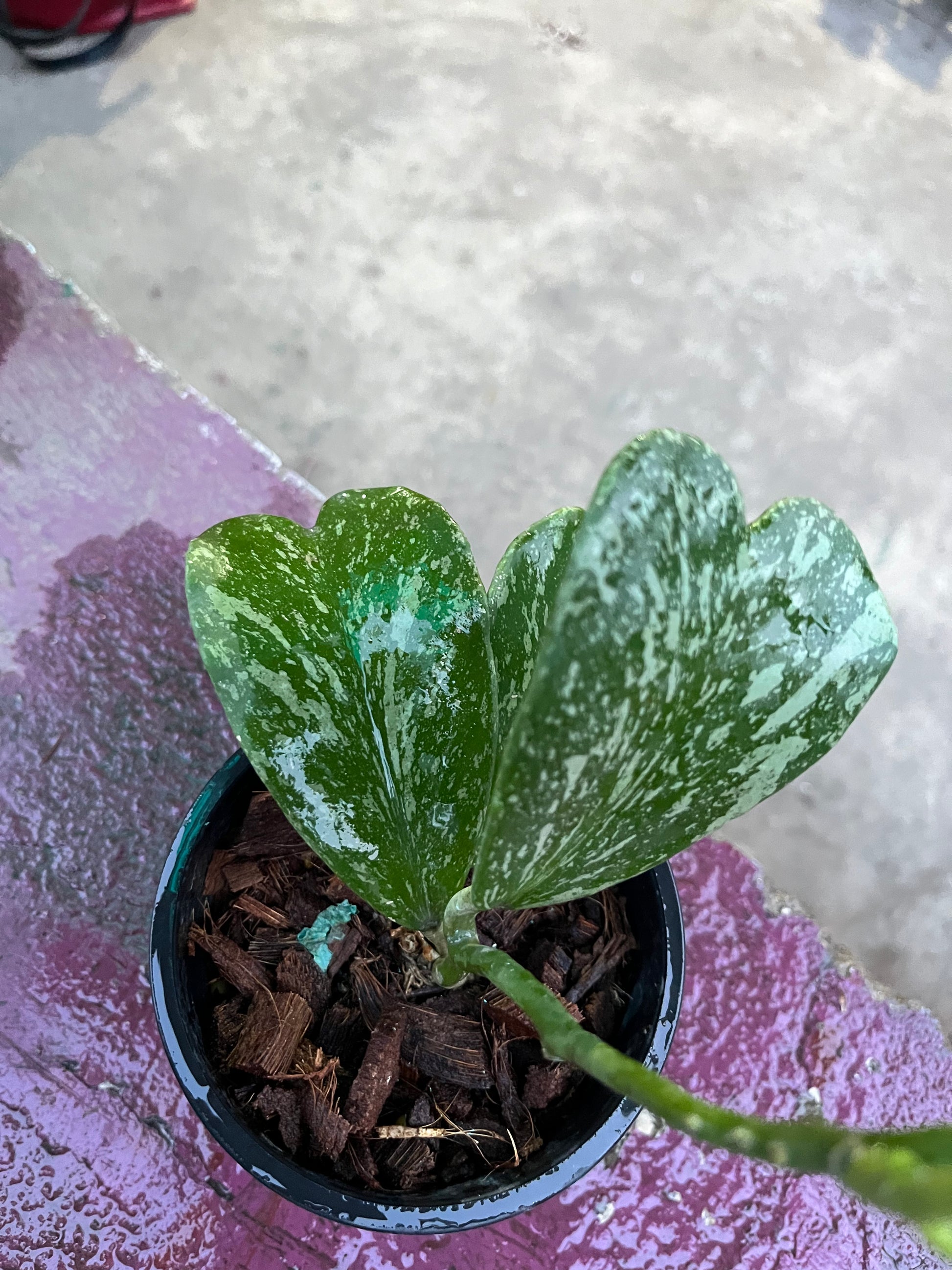 Add a splash of charm to your indoor garden with the exquisite Hoya Kerrii Splash! Known for its delightful heart-shaped leaves adorned with unique speckles and splashes of silvery-white variegation, this stunning plant is a must-have for any plant enthusiast. The Hoya Kerrii Splash, also called the Sweetheart Plant, offers a blend of beauty and easy-care, making it a perfect choice for both beginners and experienced plant lovers.