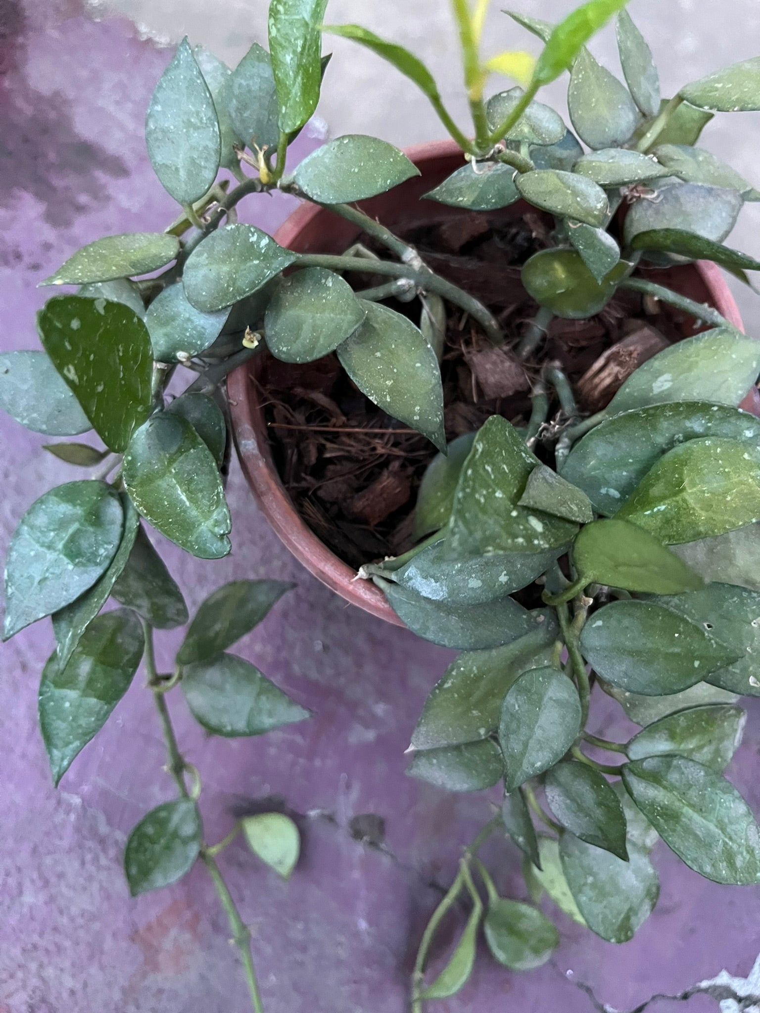 - **Exquisite Variegation**: Features small, heart-shaped leaves with unique silvery splashes and flecks, creating a stunning visual effect that sets it apart from other Hoyas.